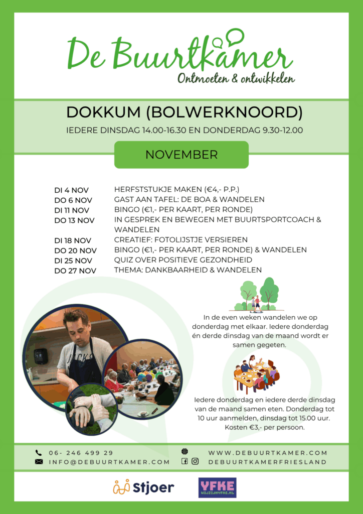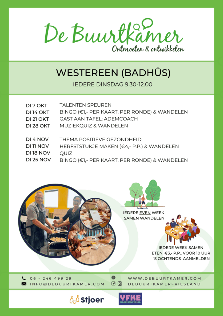 - Informatieve en leuke activiteiten, meedoen mag maar hoeft niet