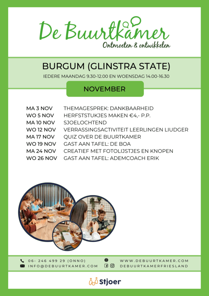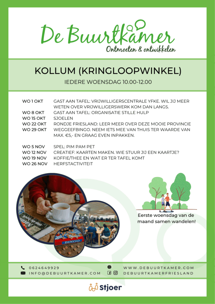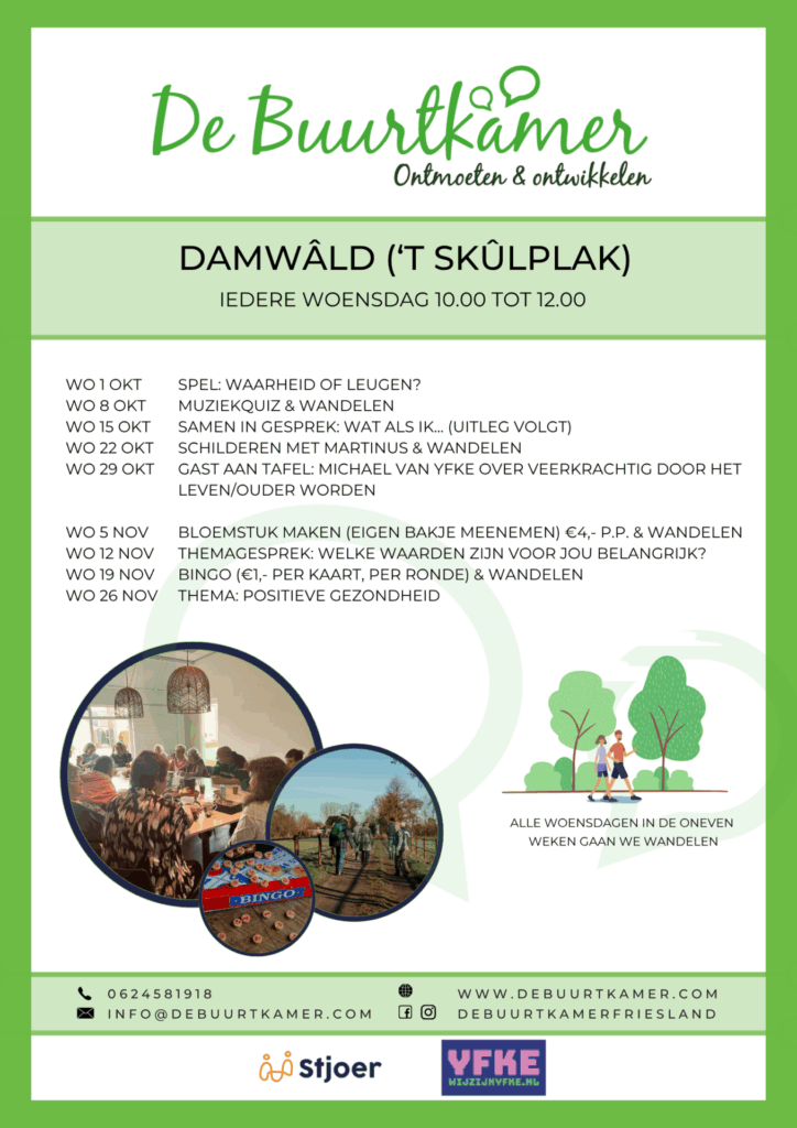 - Aanmelden voor een bezoek aan de Buurtkamer is niet nodig